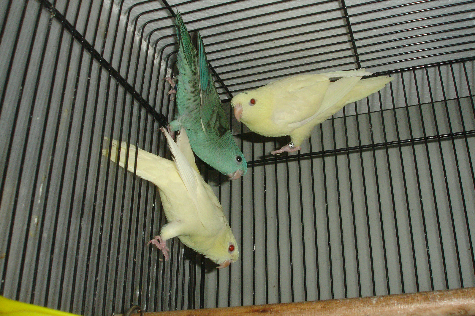 サザナミインコ、 SL G SF ブルー 君の 相方に ルチノー さん ♀ をもってきました。 この ルチノーさん、実は 左 主羽に問題があります。 私が 不在(旅行)中に 痛めてしまいました、早く手当てすれば良かったのですが、後遺症が残ってしまいました。