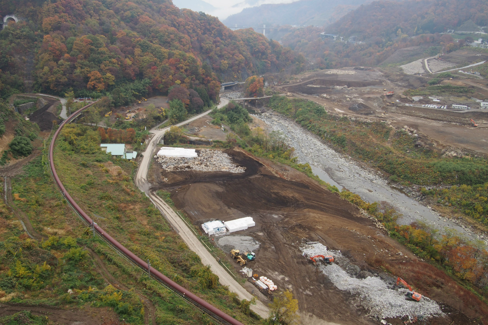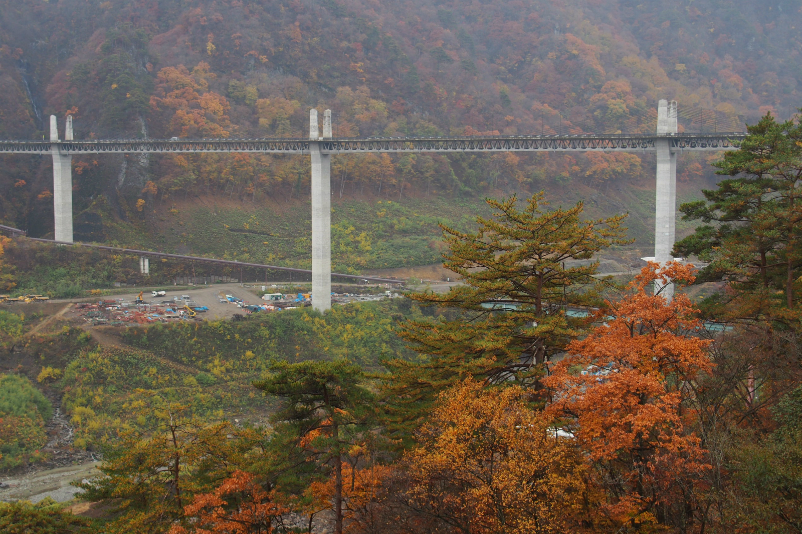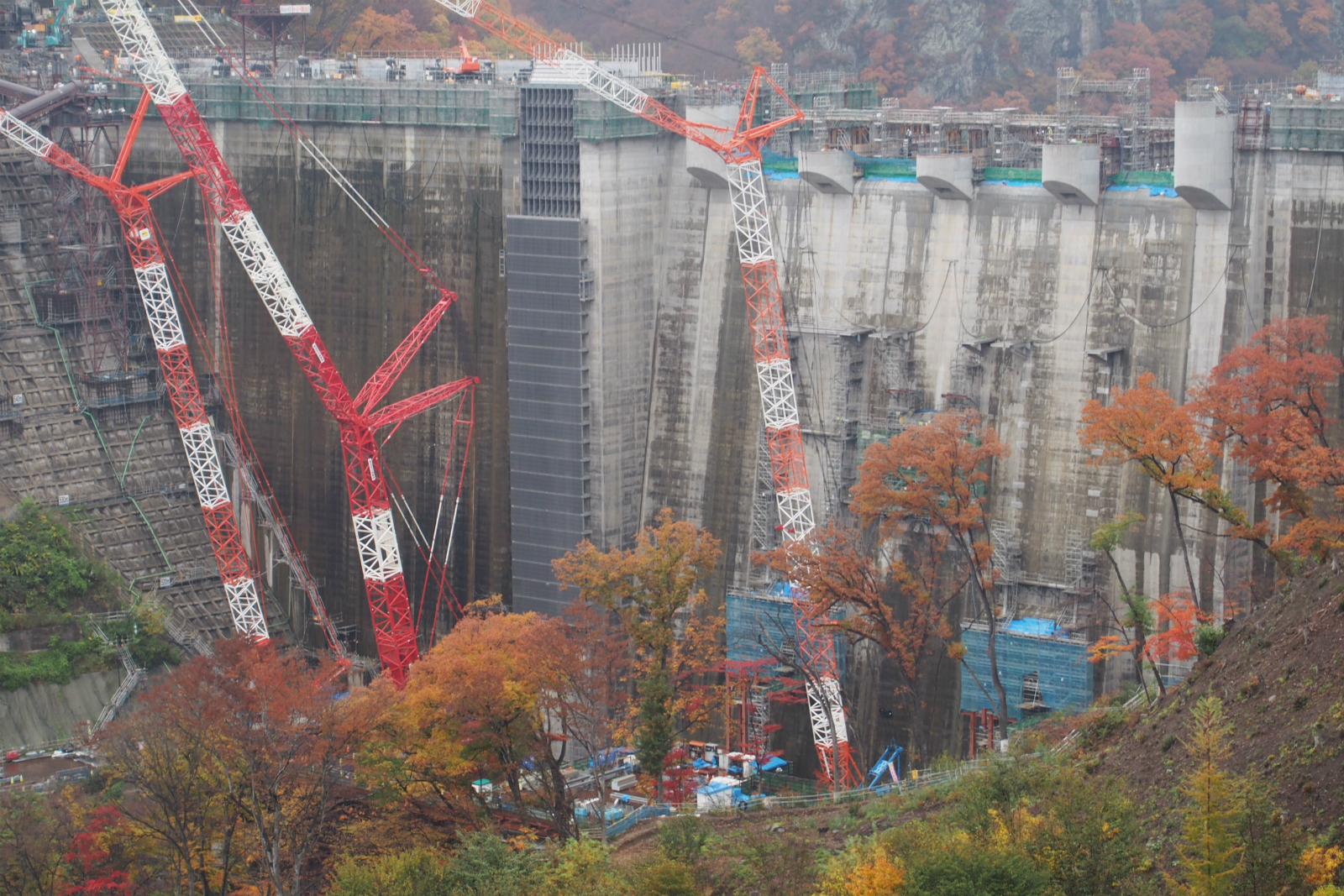 ダム工事は全てのスケールが大きく 素晴らしい。 フォトの橋は 例の 不動大橋である。
