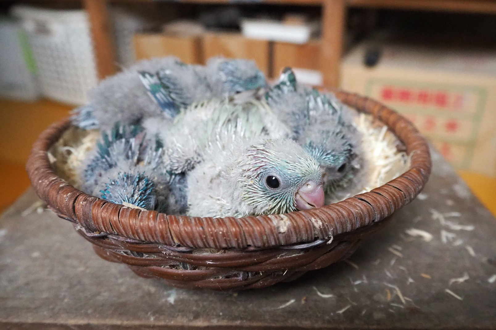 本日の 挿し餌中、 サザナミインコ の 雛は 9羽です。