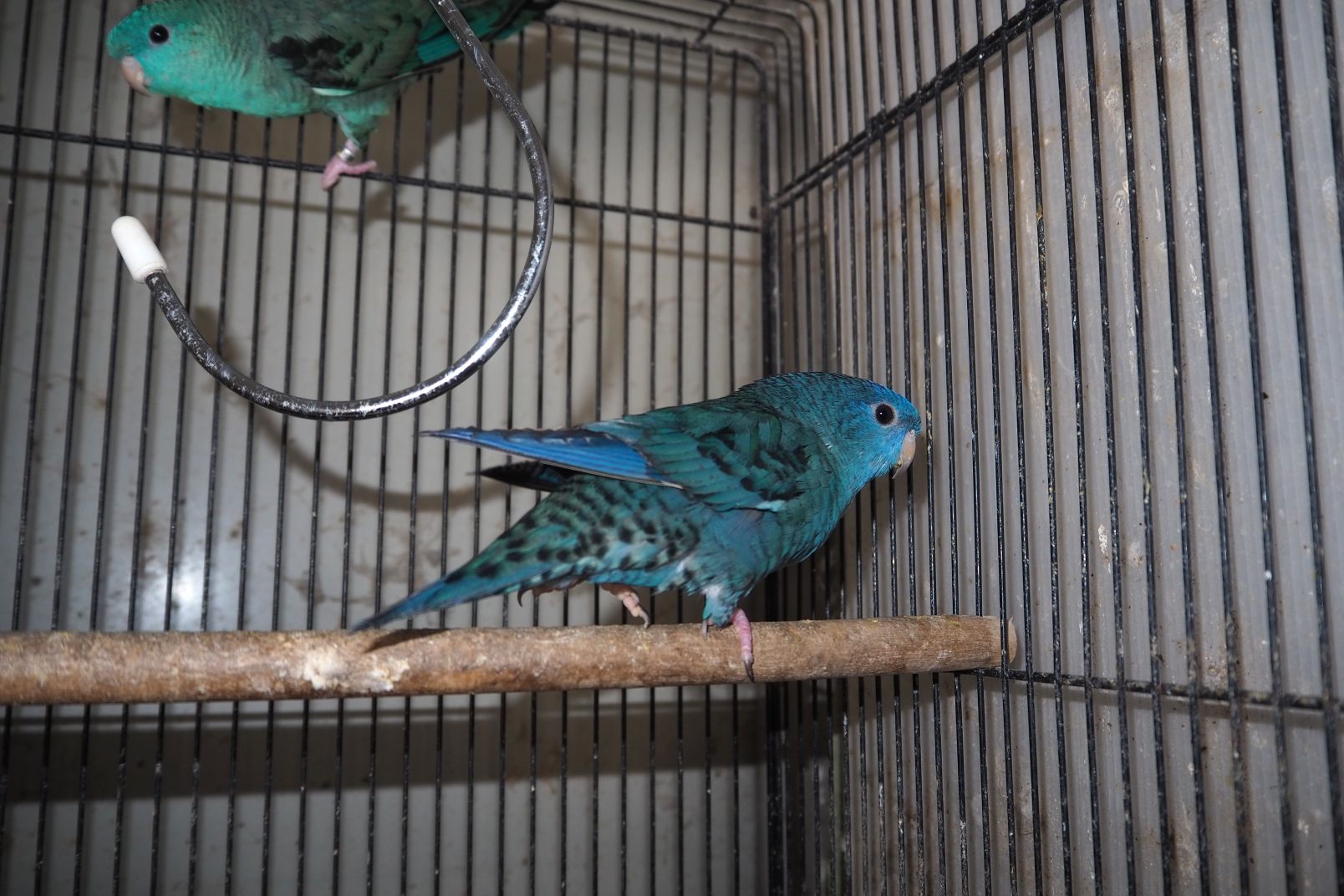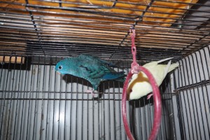 左フォトは ケージ No. b-9 、♂ コバルト/イノ × ♀ ターコイズ。
