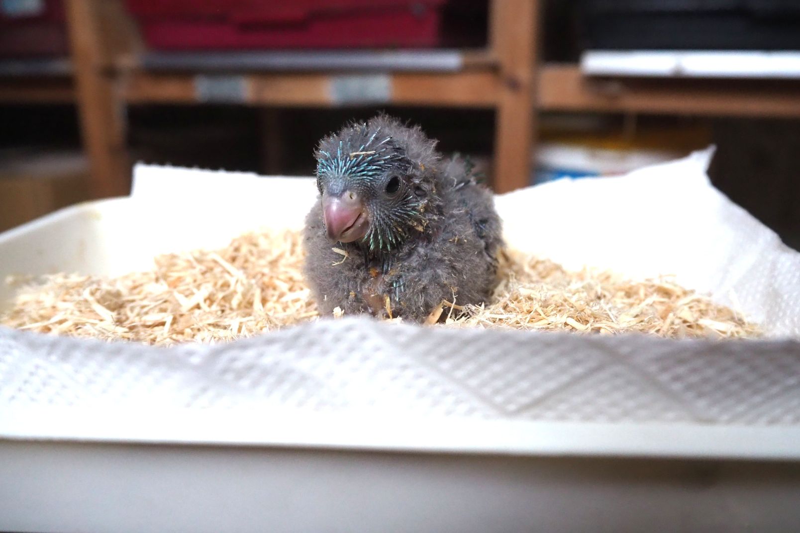 巣房 c – 6 、サザナミインコ の ヒナ、ターコイズブルー。 (画像クリック → 拡大に)
