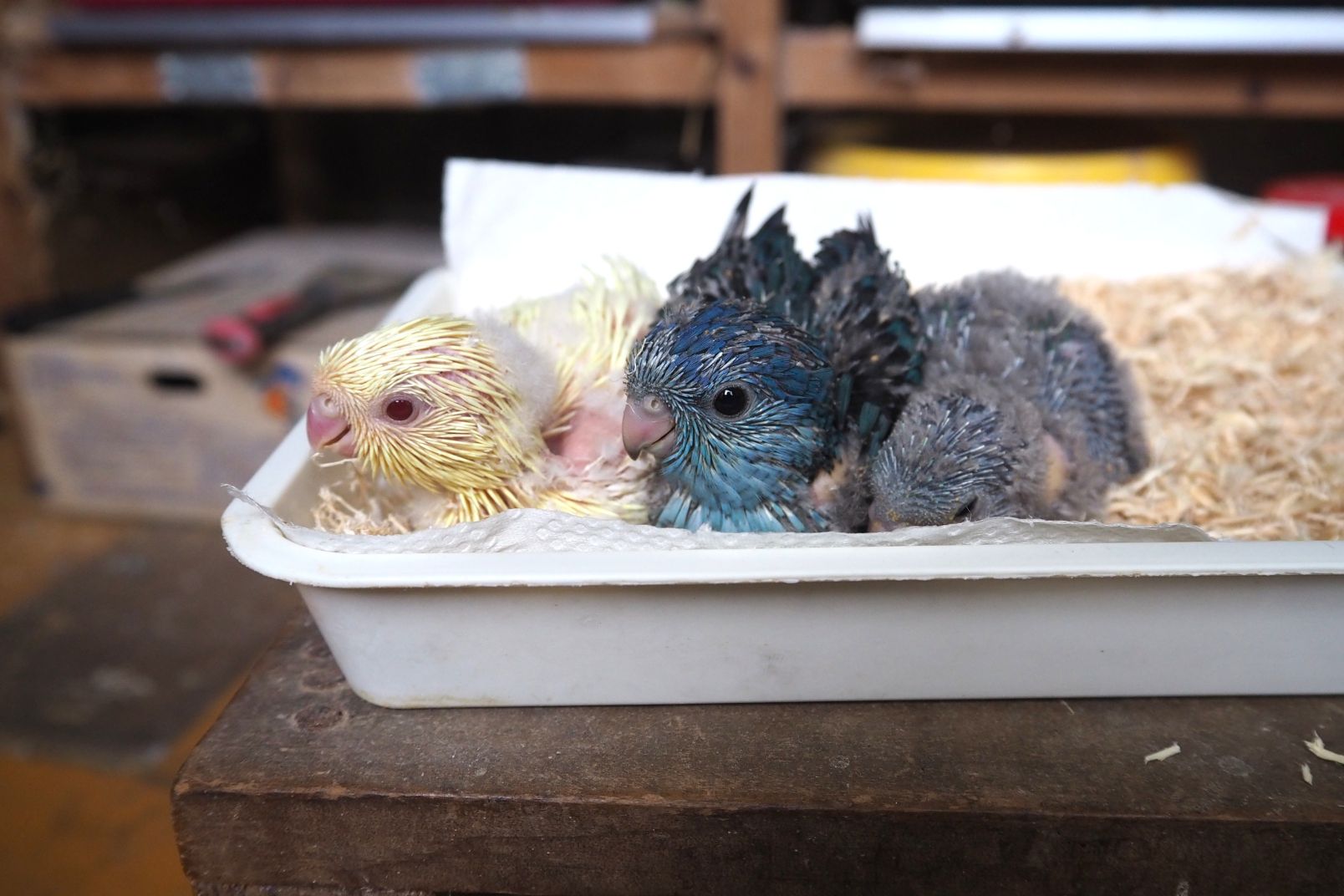 本日の サザナミインコ、挿し餌中は 7羽 です。 ( 1羽 写っていませんが )