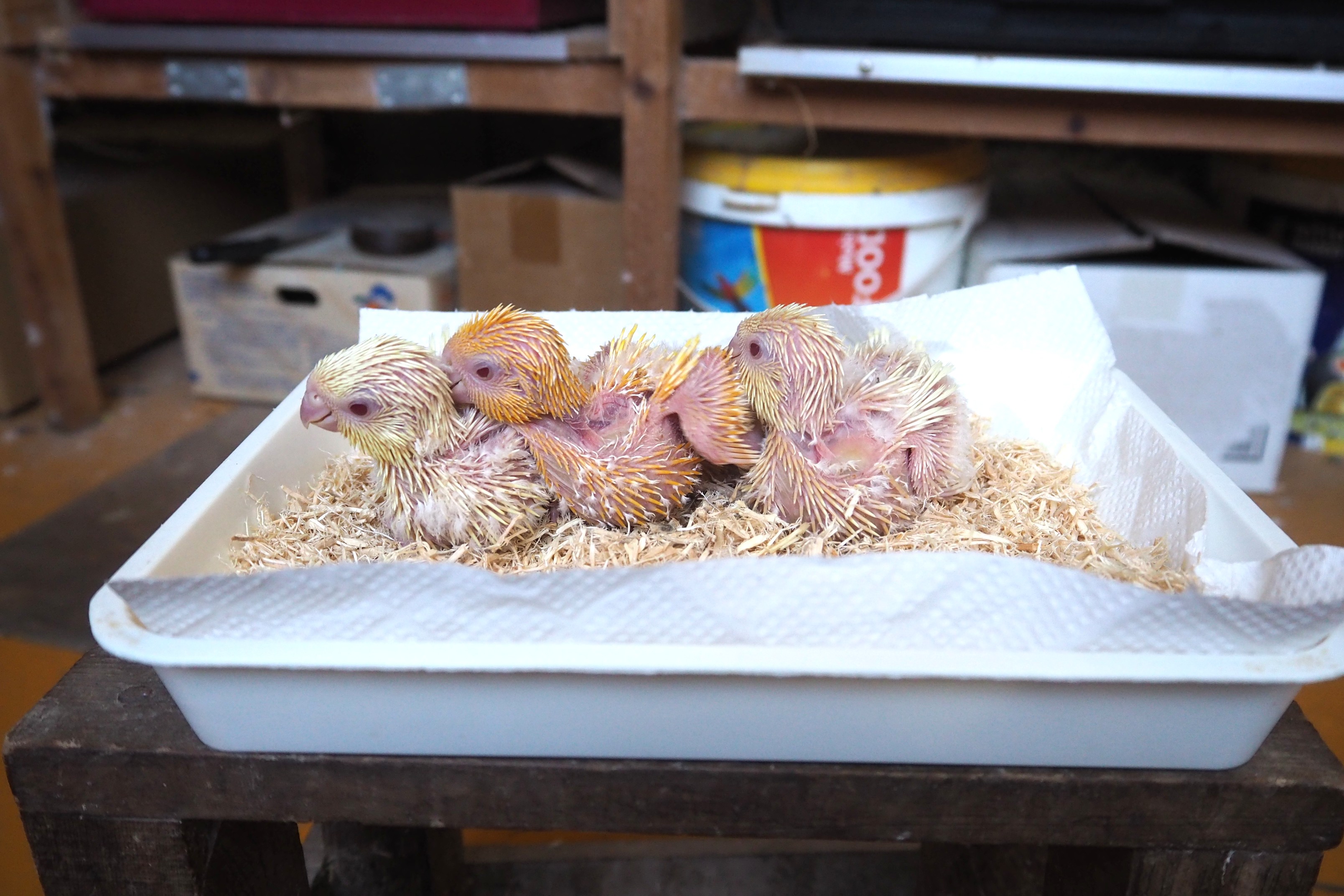 挿し餌 開始 2日目、サザナミインコ 本日の ヒナ達です。