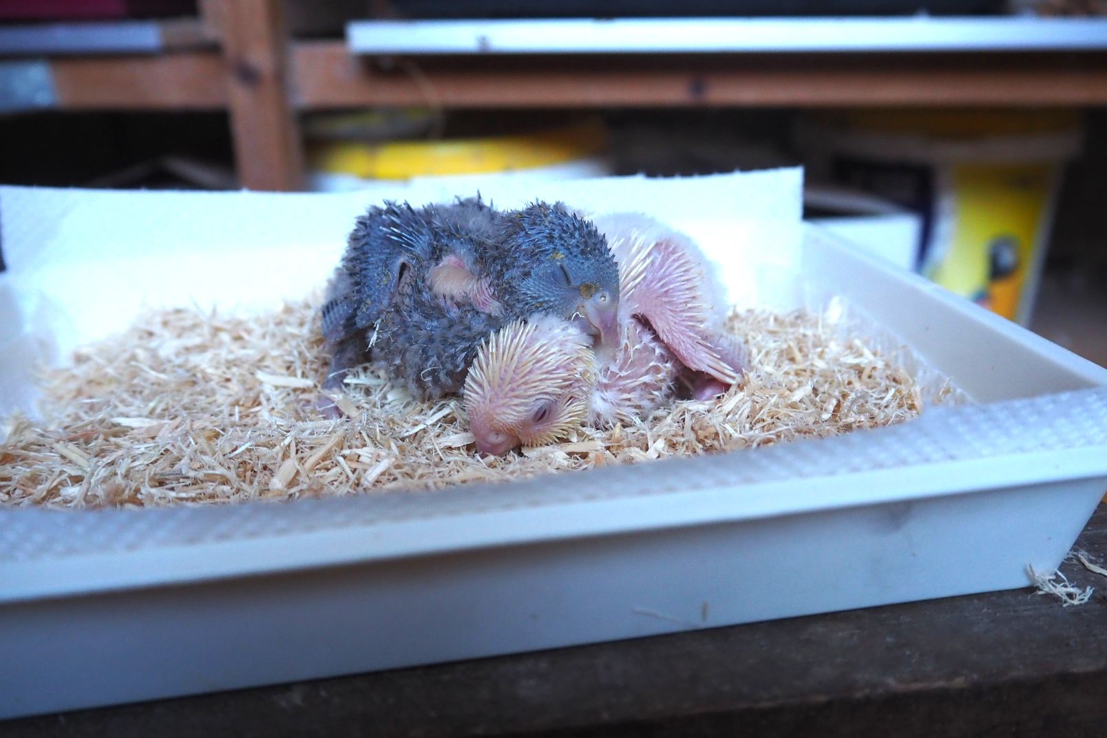昨夜 巣上げをした サザナミインコ、ひな 2羽 です。